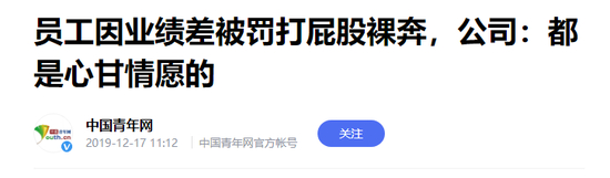 2019年,广西南宁街头,一群男员工因业绩未达标,被罚打屁股、裸奔。