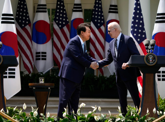 4月27日,到访华盛顿的韩国总统尹锡悦终于得偿所愿,与美国总统拜登共同发布了《美韩联合声明》,推动韩国朝着与美在全球和区域战略上牢牢绑定的方向上迈出一大步。