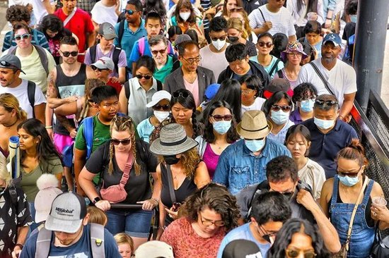2022年7月,加拿大多伦多的乘客蜂拥上船。Omicron变异株在当地引起了感染人数上升